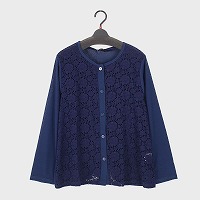 大西衣料(株)が運営する、【公式】卸・仕入れサイト『SELF WEB SHOP』で 婦人LLサイズ透かしレース丸首カーディガン をお仕入れ!