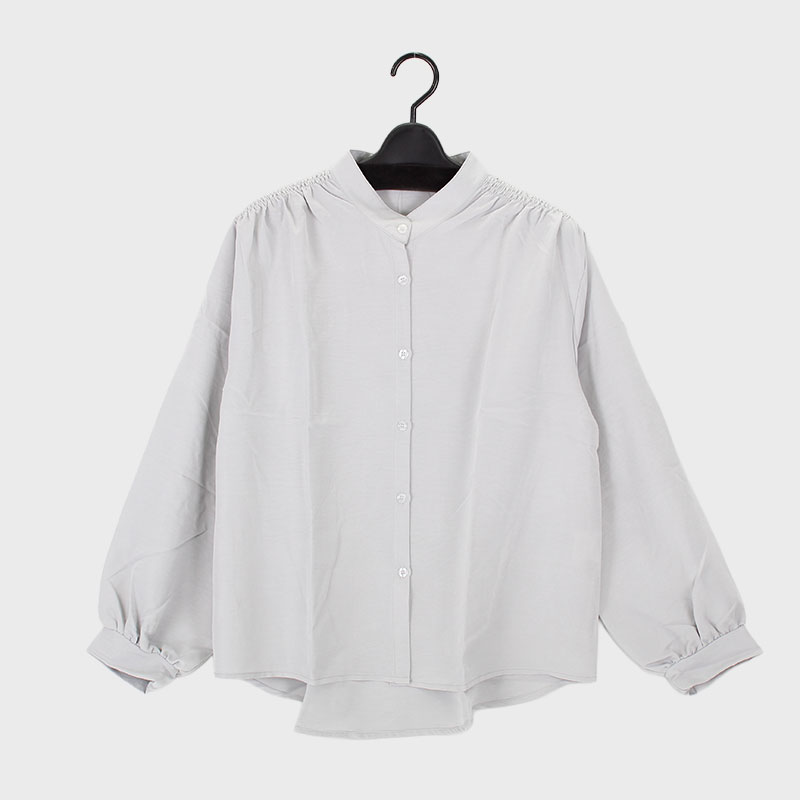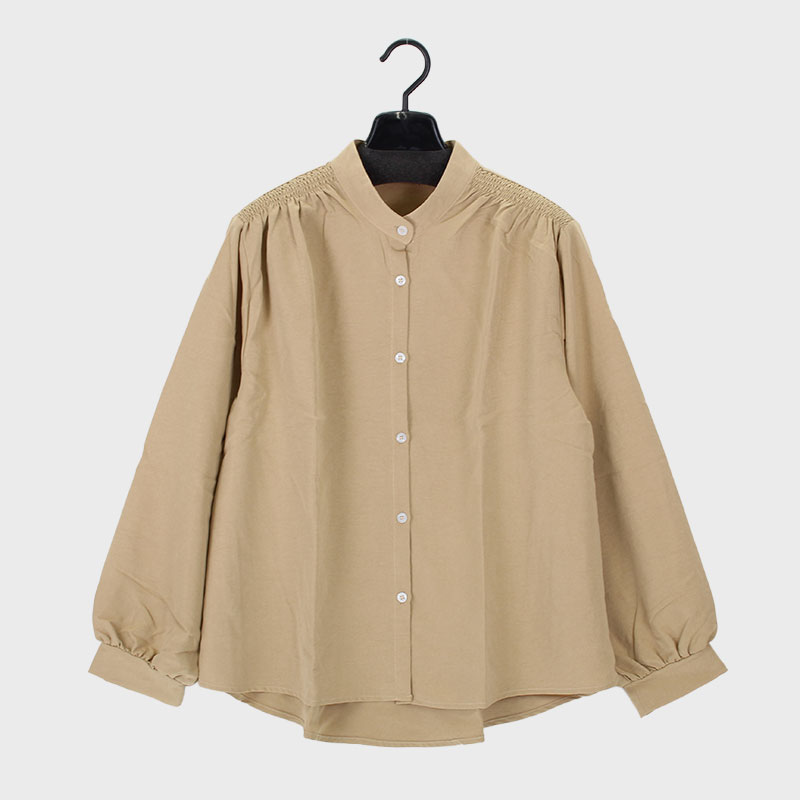 婦人長袖肩シャーリングブラウス