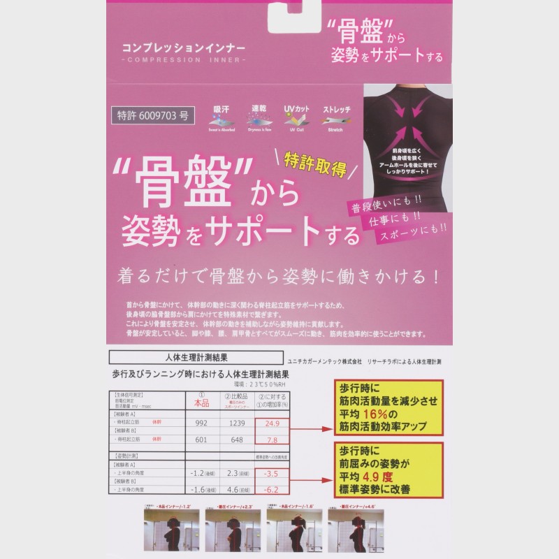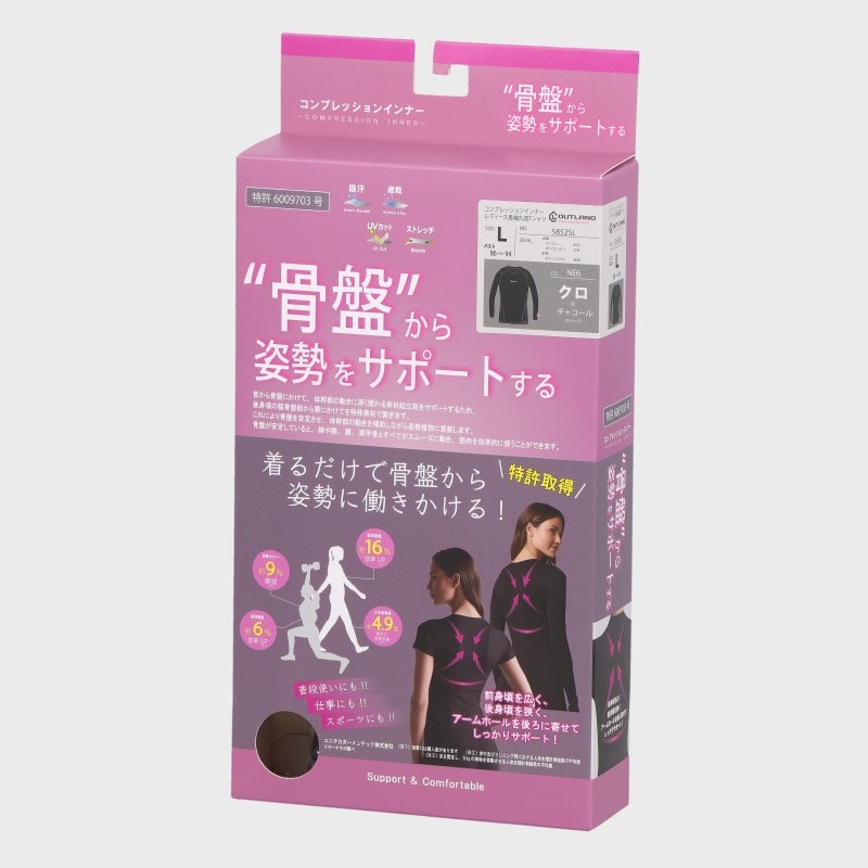 婦人「骨盤」から姿勢をサポートするコンプレッションインナーレディース長袖丸首Tシャツ(58525L)