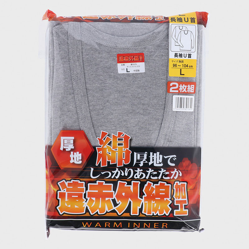 紳士厚地長袖U首シャツ2枚組 遠赤外線加工
