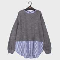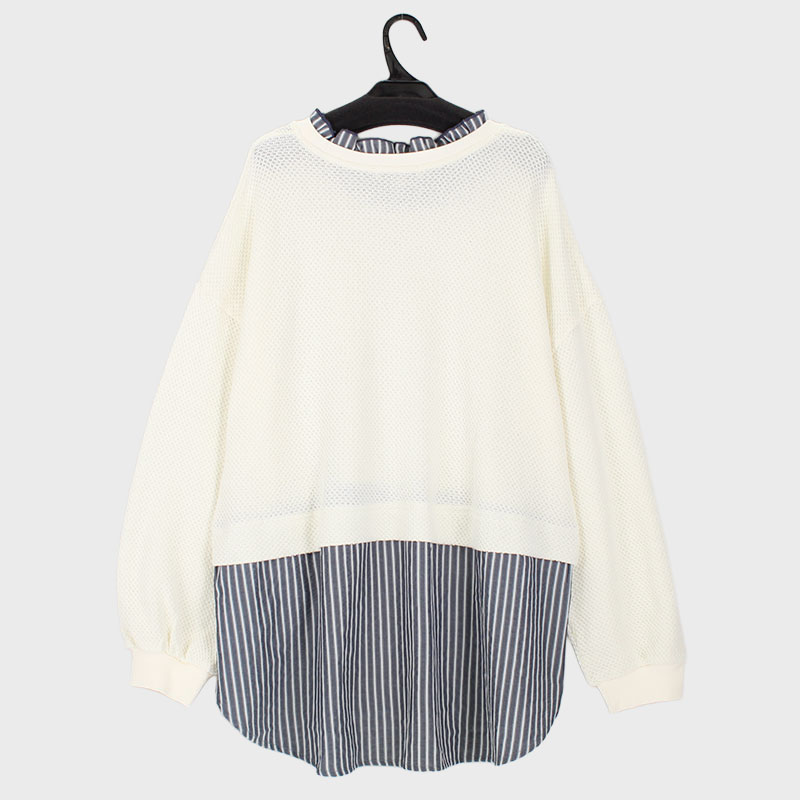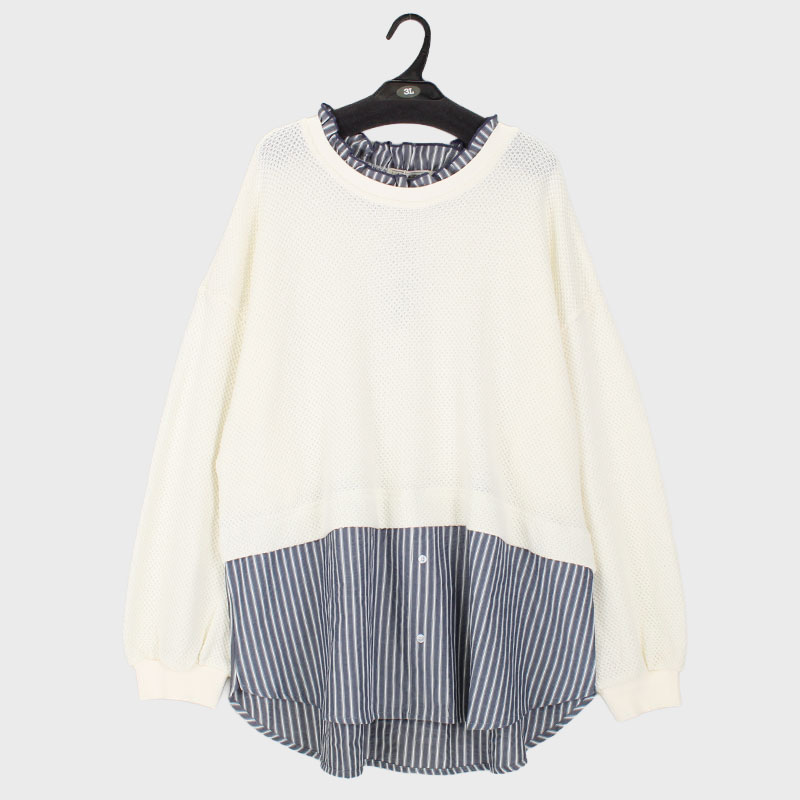 大西衣料(株)が運営する、【公式】卸・仕入れサイト『SELF WEB SHOP』で 婦人大寸長袖ラーベン柄レイヤード風布帛切替プルオーバー をお仕入れ!