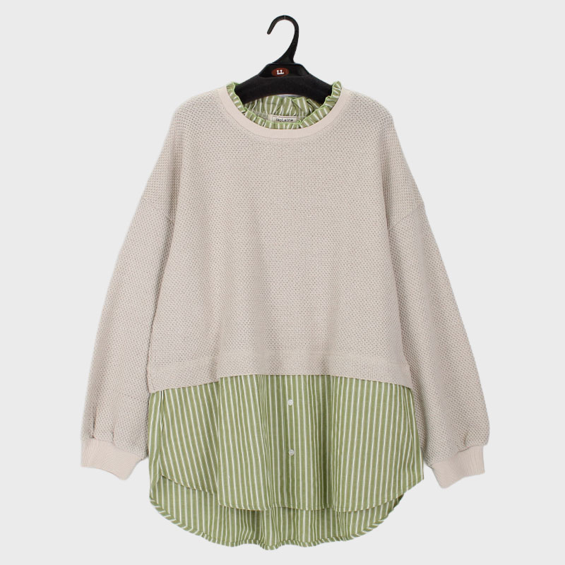 婦人大寸長袖ラーベン柄レイヤード風布帛切替プルオーバー