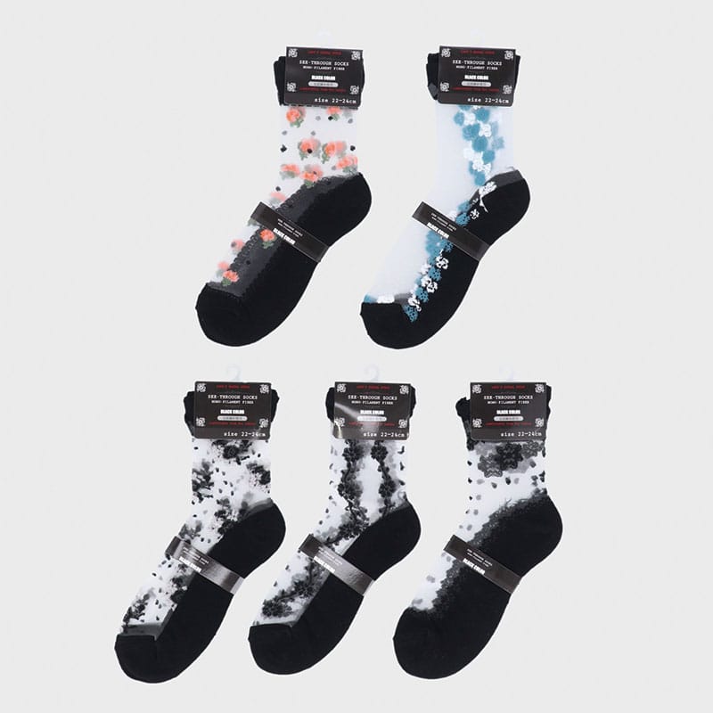婦人綿混シースルーソックス黒ベース