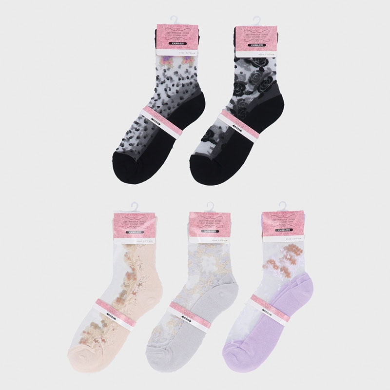 婦人綿混シースルーソックス色込み