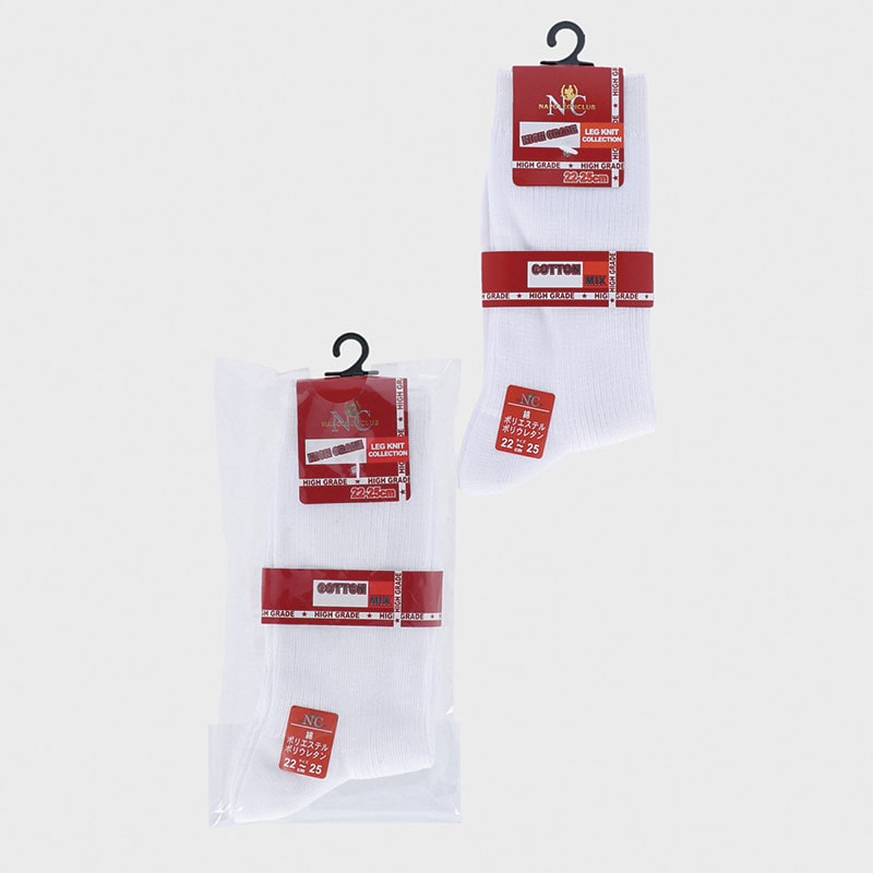 婦人綿混リブソックス白