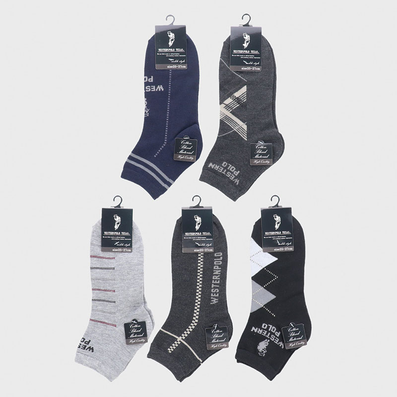 紳士綿混丈長スニーカーソックス(ウエスタンポロ柄)