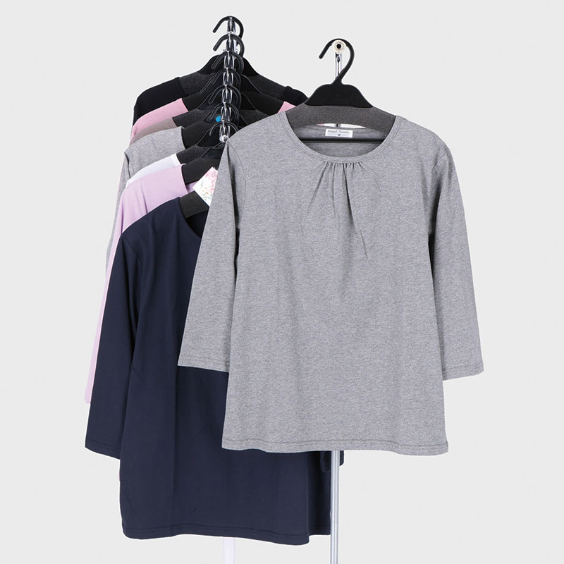 婦人大寸7分袖綿100無地胸ギャザーTシャツ