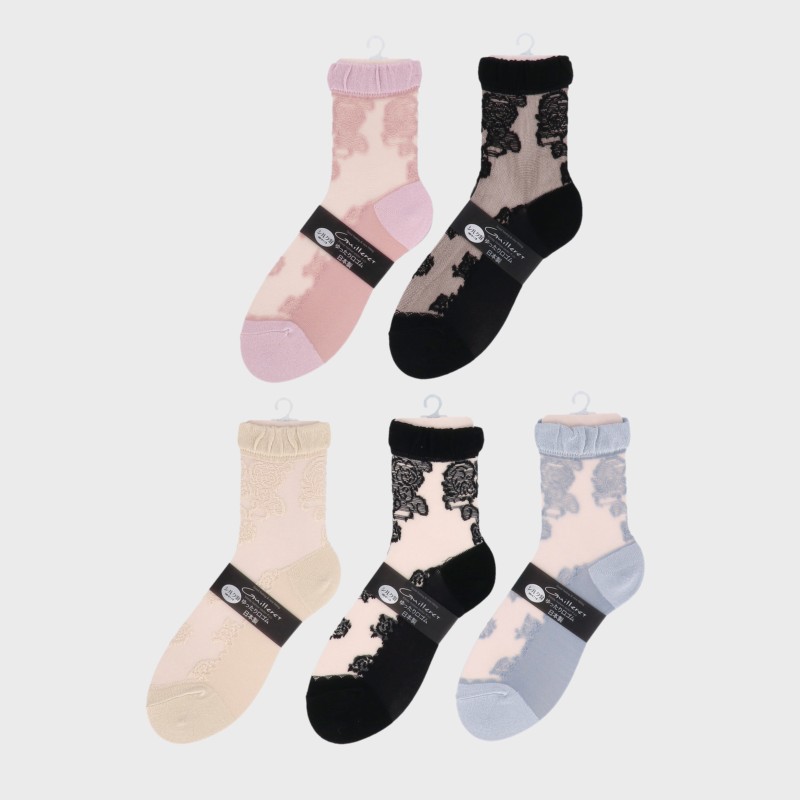 婦人『ギュレ』シルク混台紙入りシースルーソックス