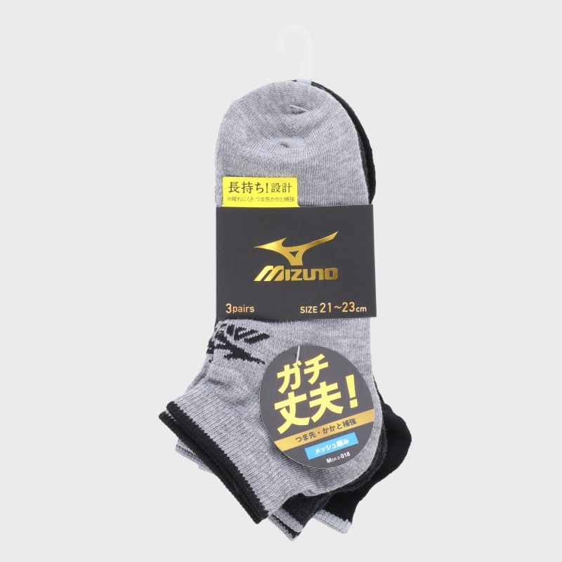 子供『Mizuno』3足組丈夫爪先踵補強TOPラインロゴ甲メッシュスニーカー丈ソックス