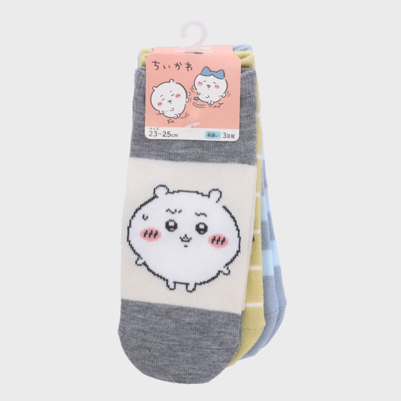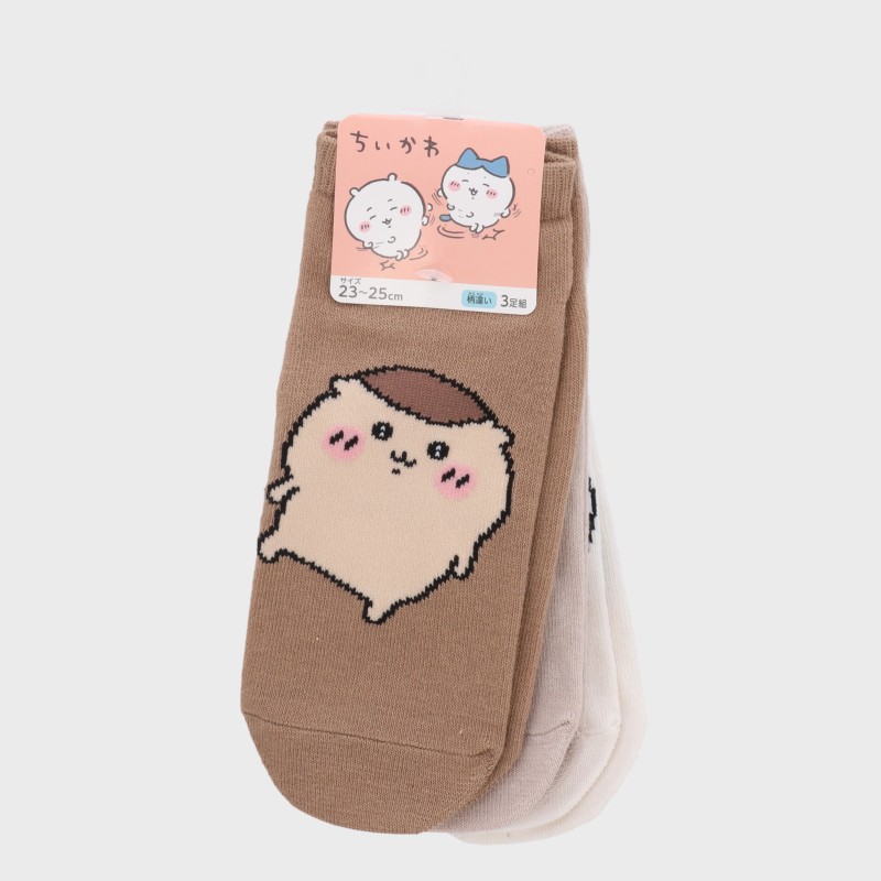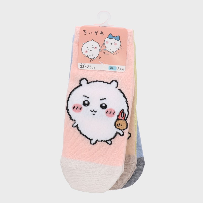 婦人『ちいかわ』3足組フロント柄スニーカー丈ソックス