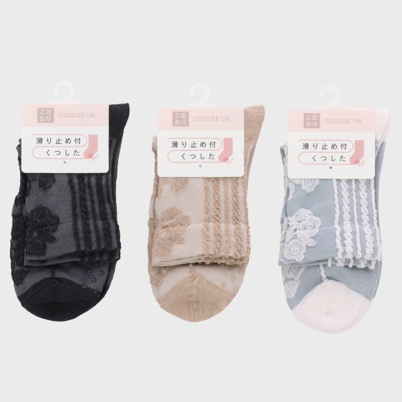 婦人『こだわり』滑り止め付きロークルー丈ソックス