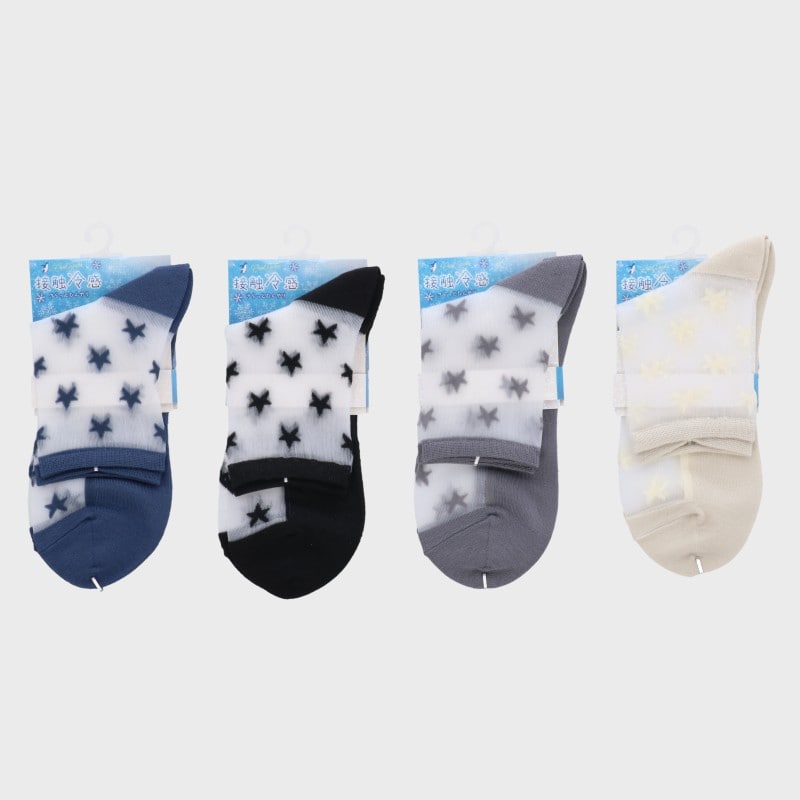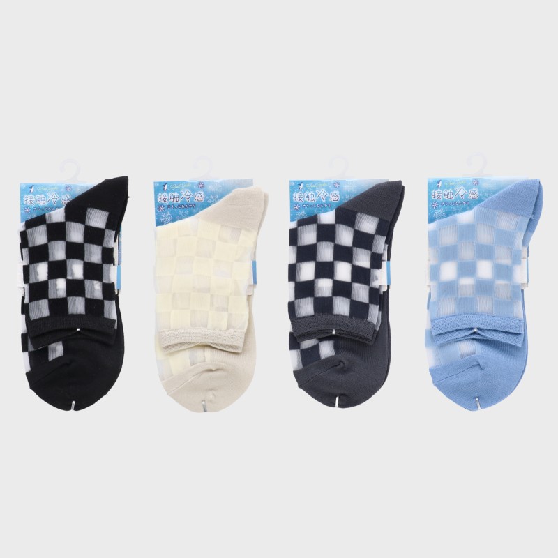 婦人『接触冷感』部分シースルークルー丈ソックス