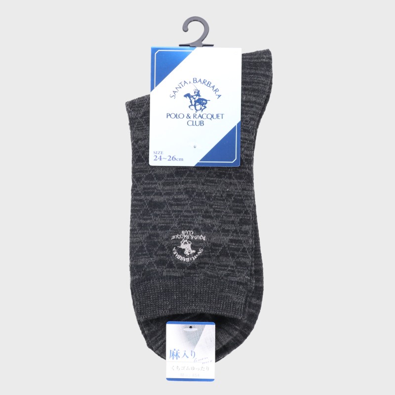 紳士『SANTA BARBARA POLO&RACQUET CLUB/サンタバーバラポロクラブ』麻入りショート丈カジュアルソックス(ダイヤ柄)