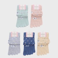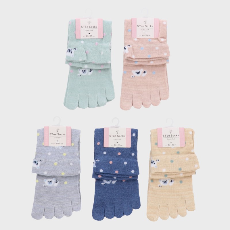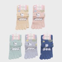 婦人『5Toe Socks』綿混アニマル柄五本指ソックス