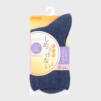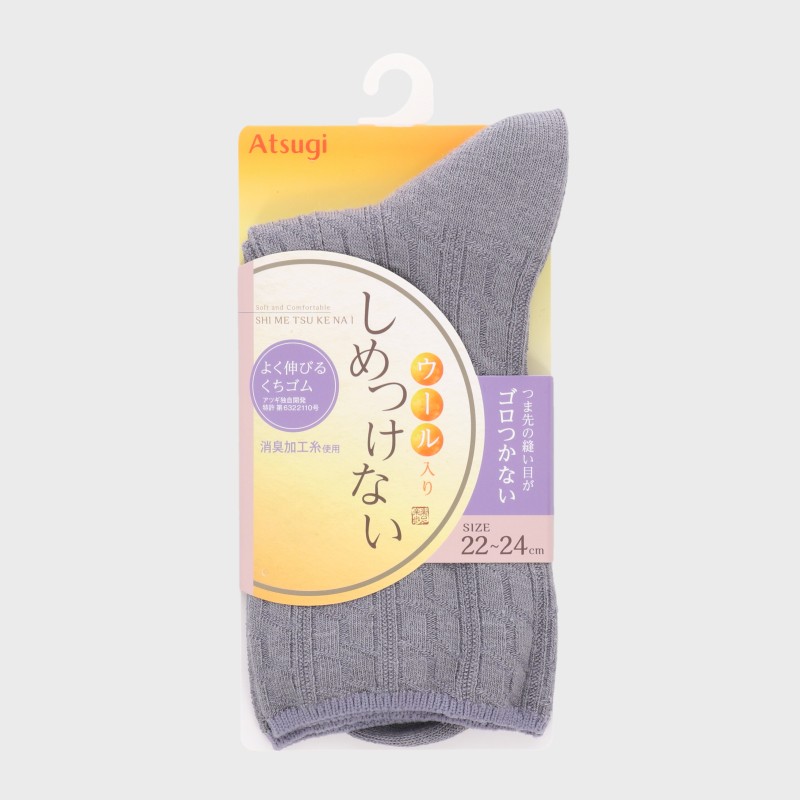 婦人『しめつけない』ウール入りリンクス編み無地クルー丈ソックス