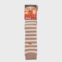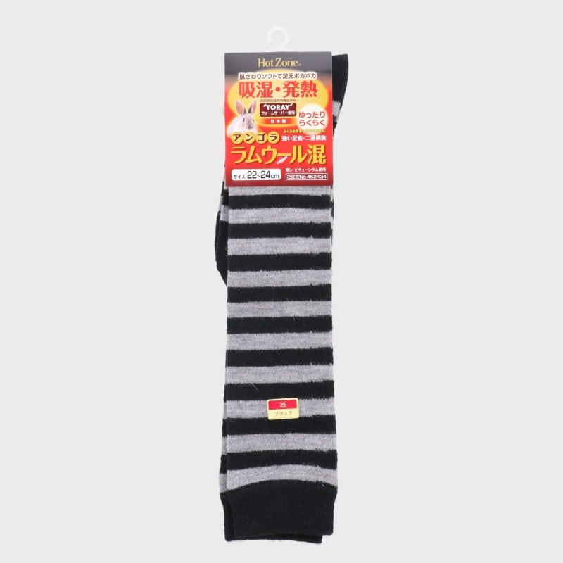 婦人『吸湿・発熱』アンゴララムウール混ハイソックスボーダー柄