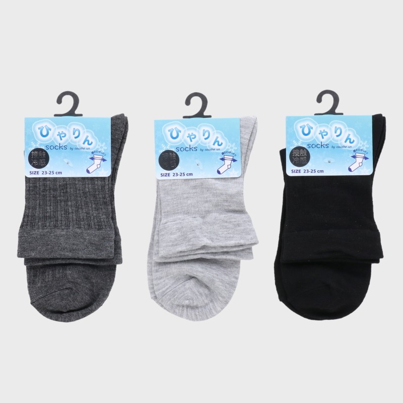 婦人『ひやりん』接触冷感ロークルーソックス