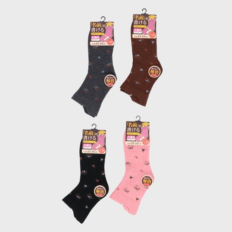 婦人毛混介護ソックス 花柄