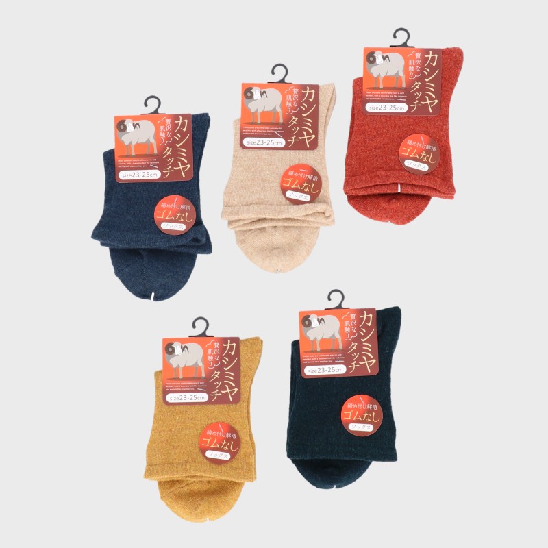 婦人カシミヤタッチ無地ソックス ゴムなし