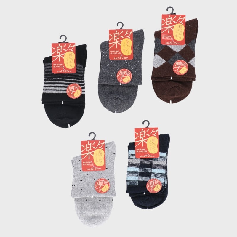 婦人毛混ゴムなし柄ソックス 超ゆったり5柄アソート