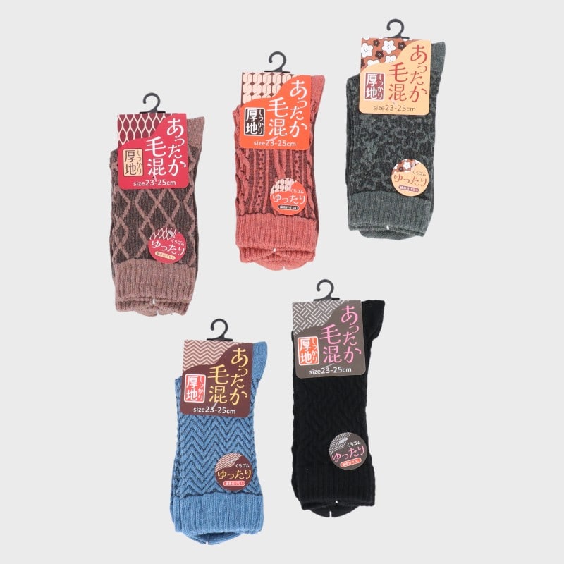 婦人毛混厚地柄ソックス ゆったり口ゴム