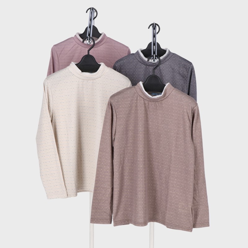 婦人大寸TC接結ジャガード衿切替えハイネックTシャツ