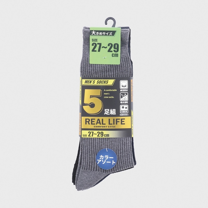 紳士綿混リブクルーソックス5足組(3色)27−29cm