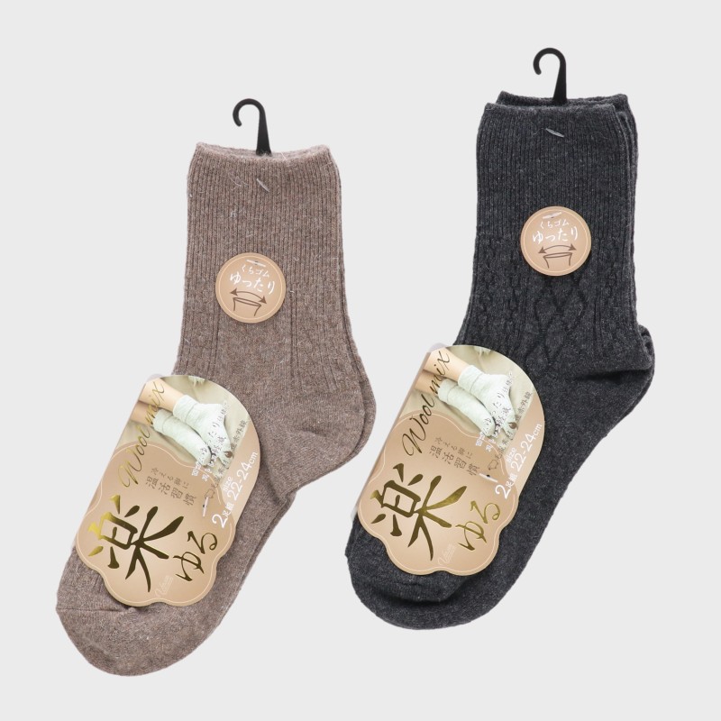 婦人クルー丈毛混ゆったり遠赤外線加工2足組