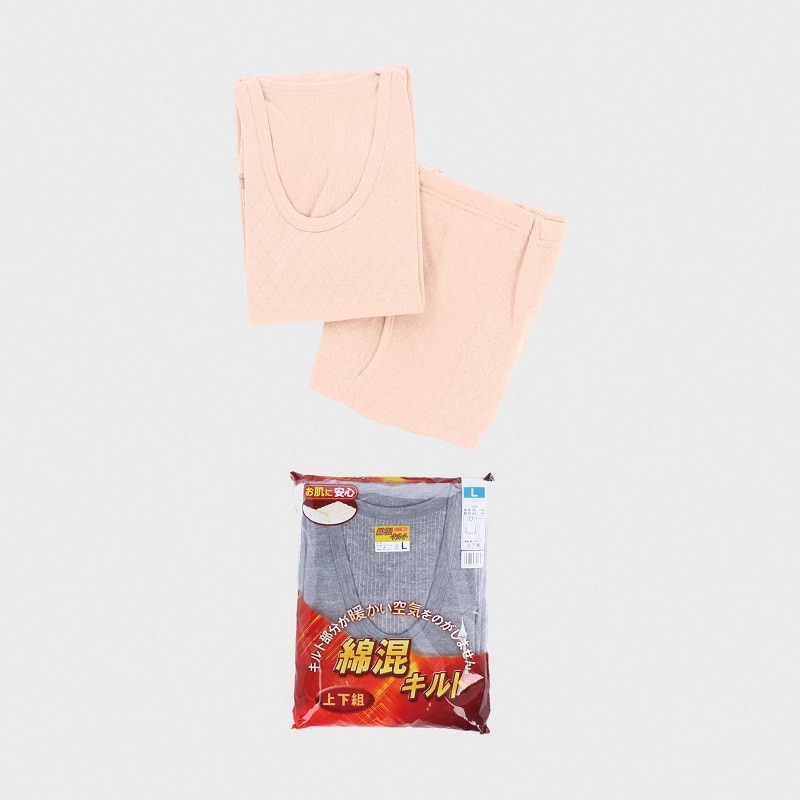 紳士綿混キルト長袖U首・ズボン下 上下組