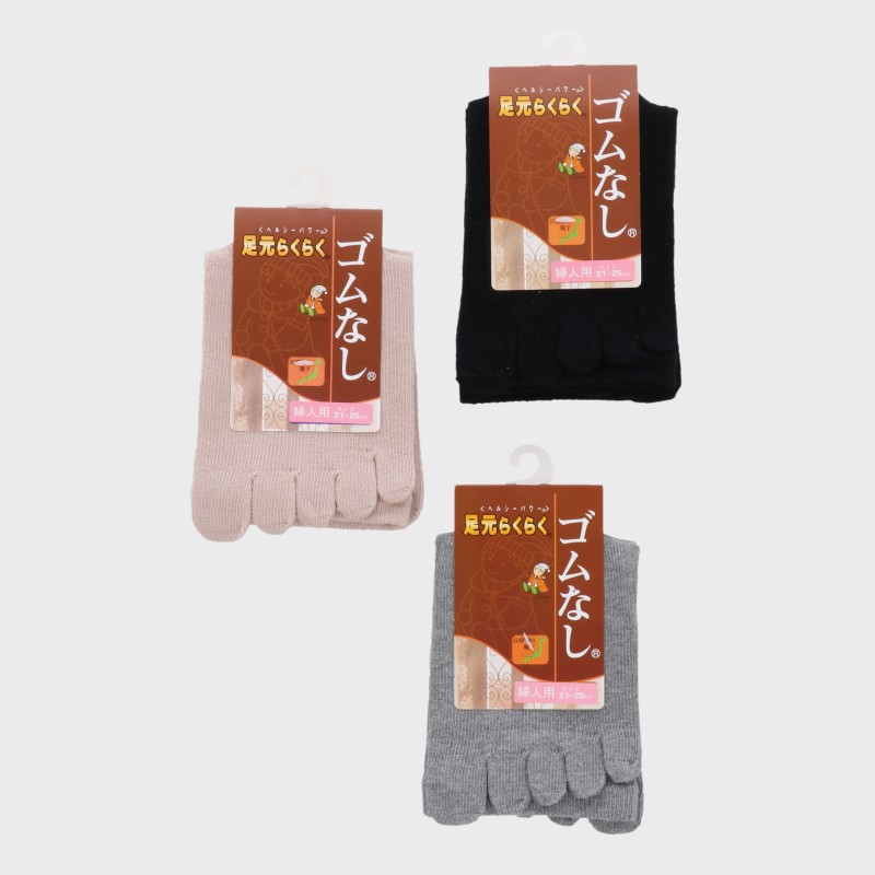 婦人日本製綿混五本指ゴム無しソックス