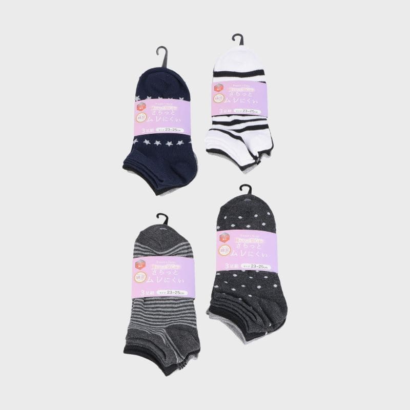婦人綿混スニーカーソックス3足組「C」