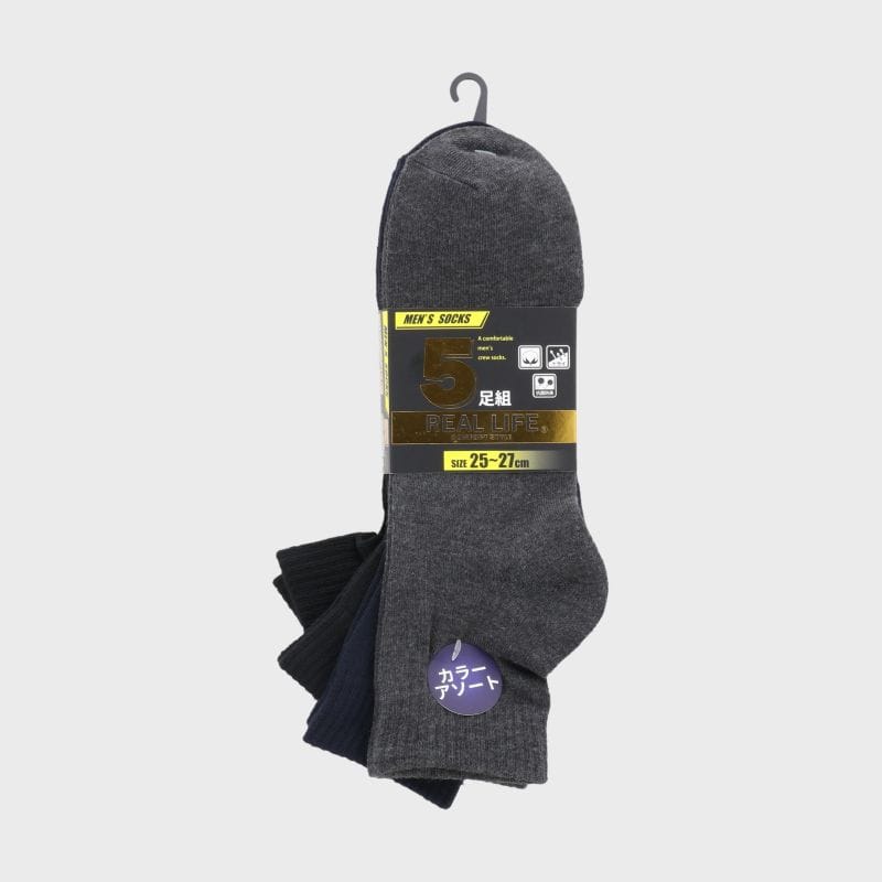 紳士綿混スニーカーソックス5足組(3色)25−27cm