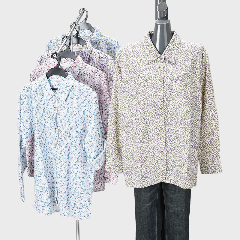 婦人花柄ロールアップブラウス