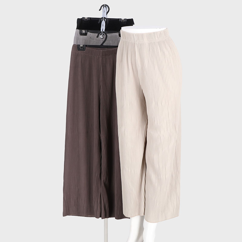 婦人リブプリーツワイドパンツ