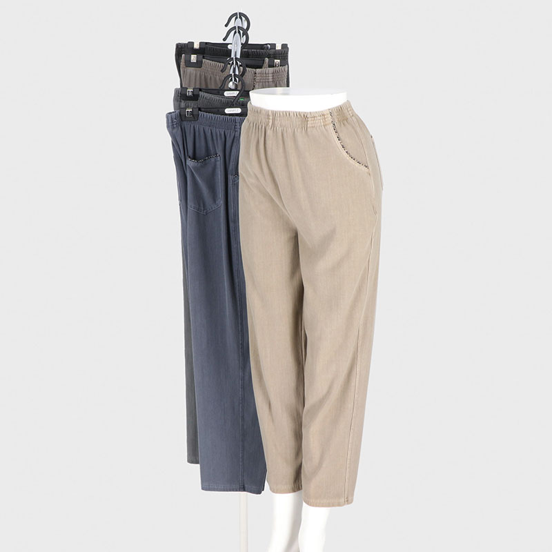 婦人製品染め格子パイピング入りフリーパンツ60