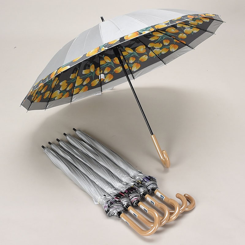 晴雨兼用表シルバー16本骨ジャンプ傘