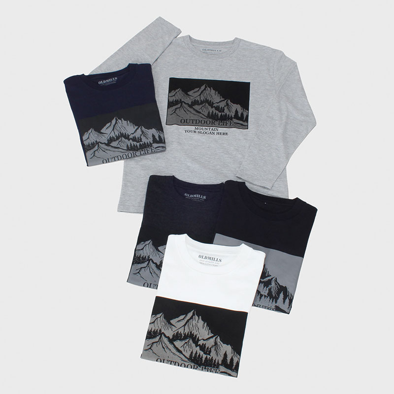 紳士大寸長袖アウトドアプリントTシャツ