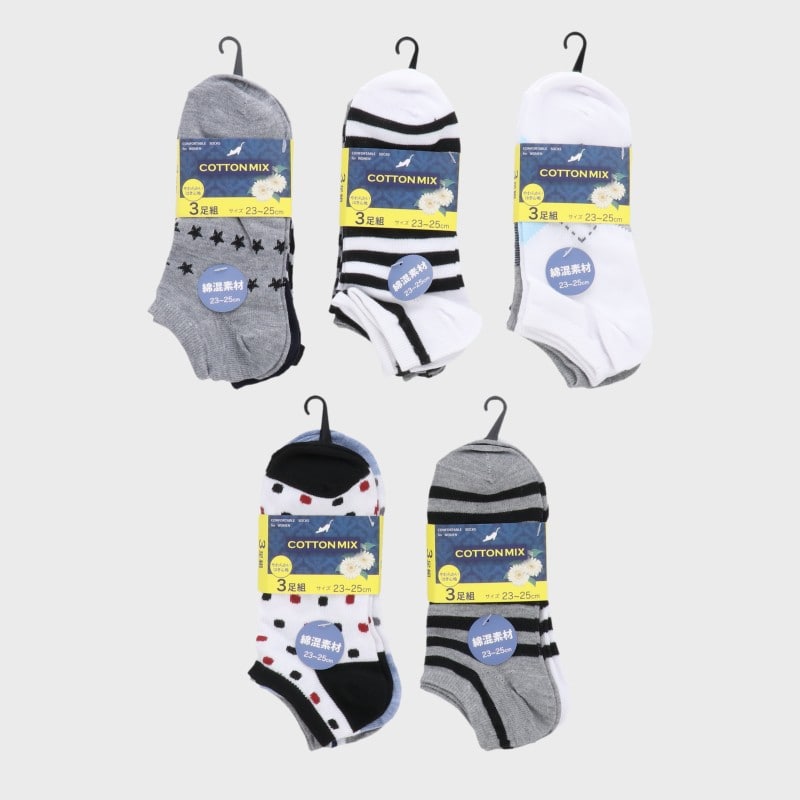 婦人綿混スニーカーソックス3足組「B」