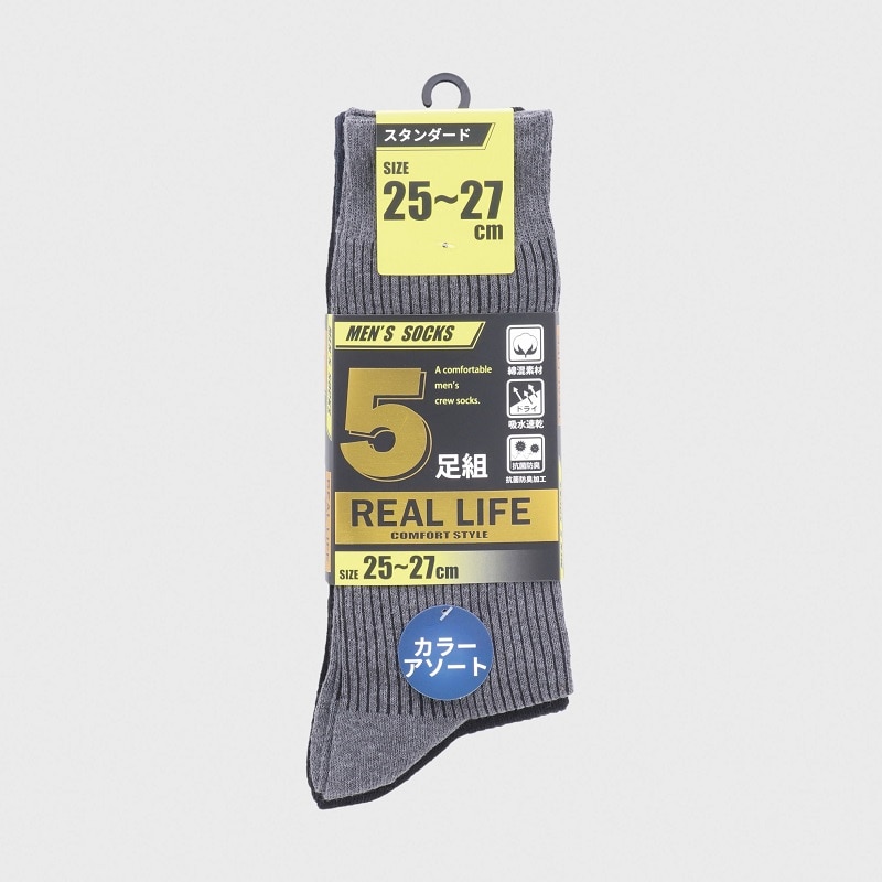 紳士綿混リブクルーソックス5足組(3色)25−27cm
