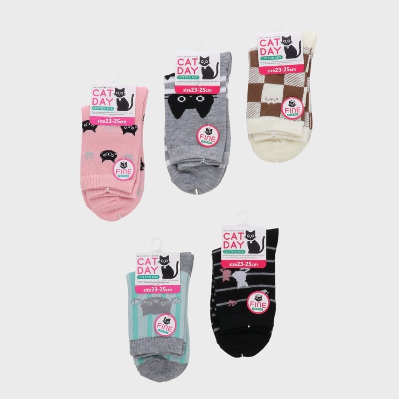 婦人綿混ネコ柄ソックス 10種アソート