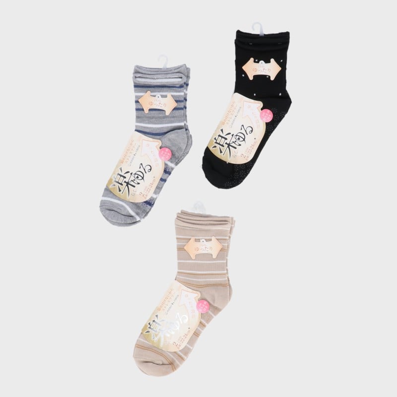 婦人クルー丈綿混滑り止め2足組