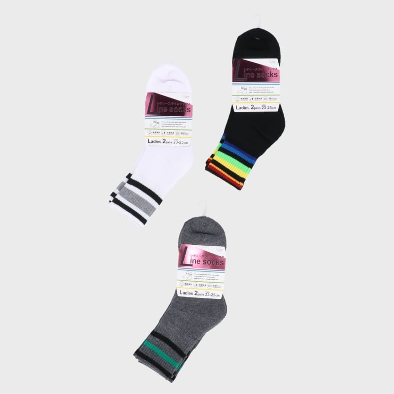 婦人クルー丈足底パイルラインソックス2足組