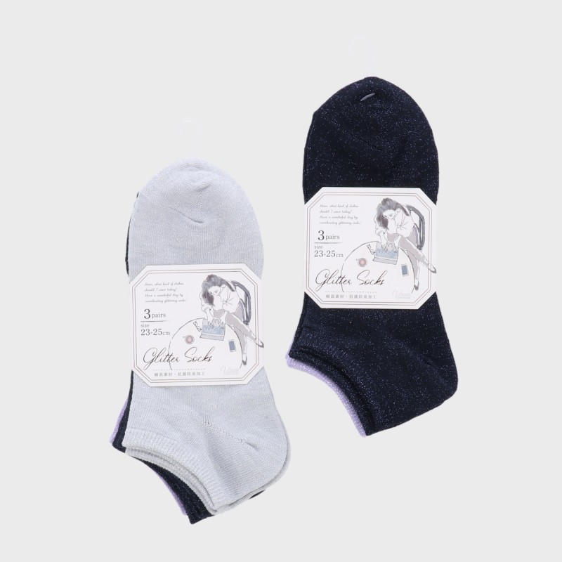 婦人スニーカー丈ラメ3足組
