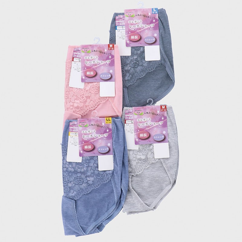 2P綿混フロントレース丈長ショーツ