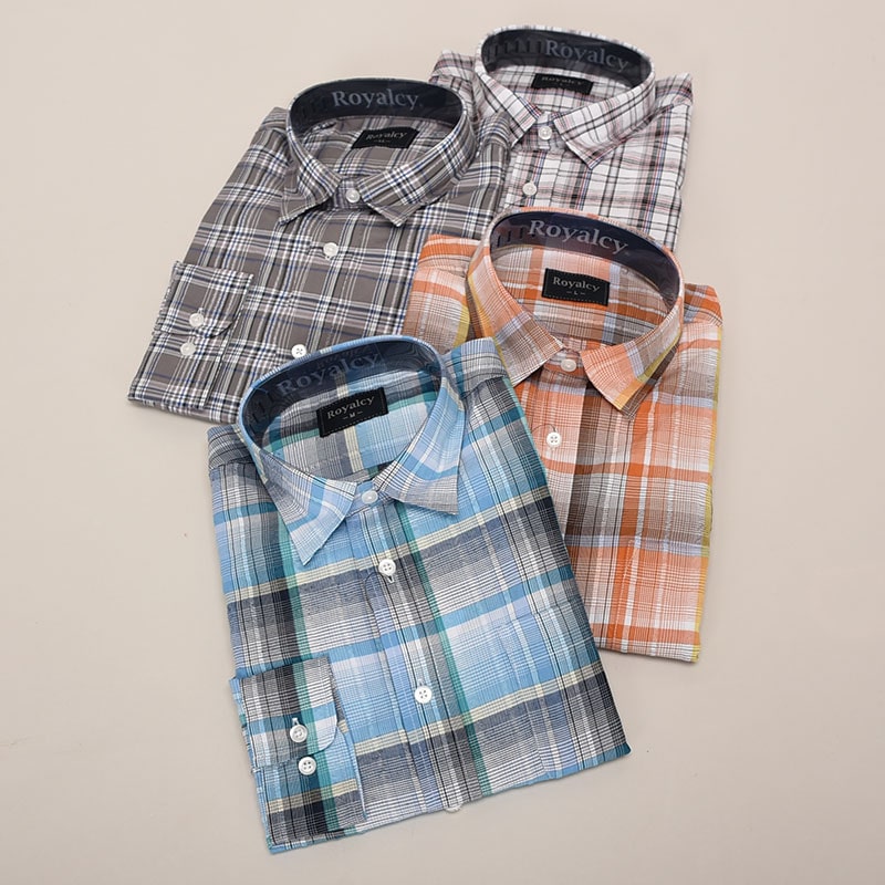 紳士大寸長袖サッカーシャツ(大格子)