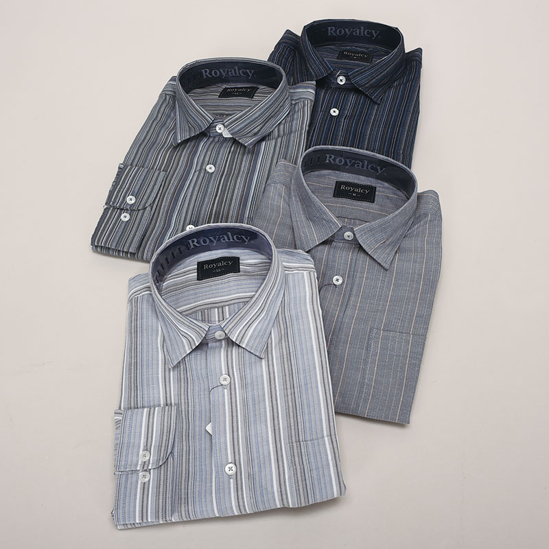 紳士大寸長袖しじらシャツ(ストライプ)