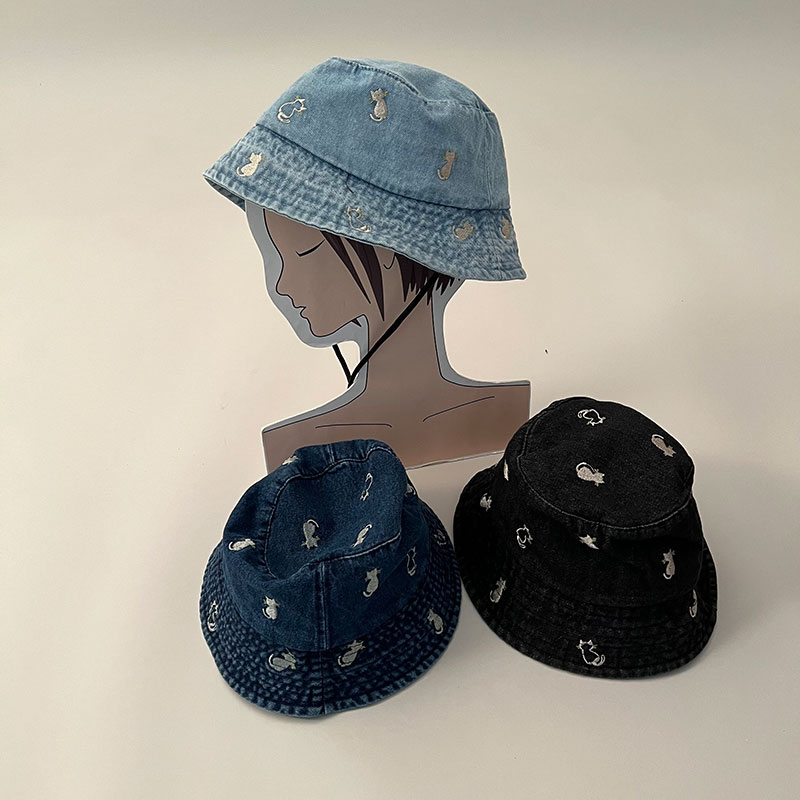 ネコ刺繍デニムハット
