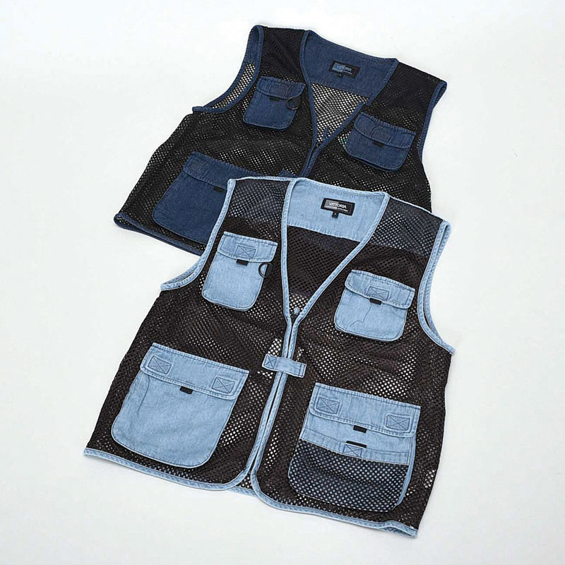 紳士デニム総メッシュベスト