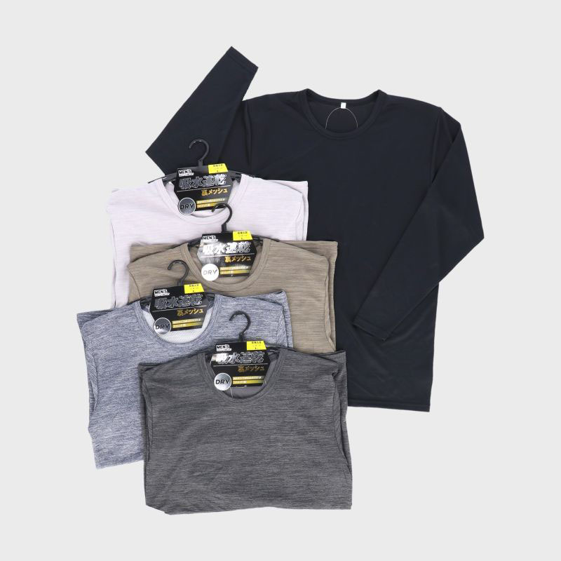 紳士無地長袖丸首裏メッシュTシャツ
