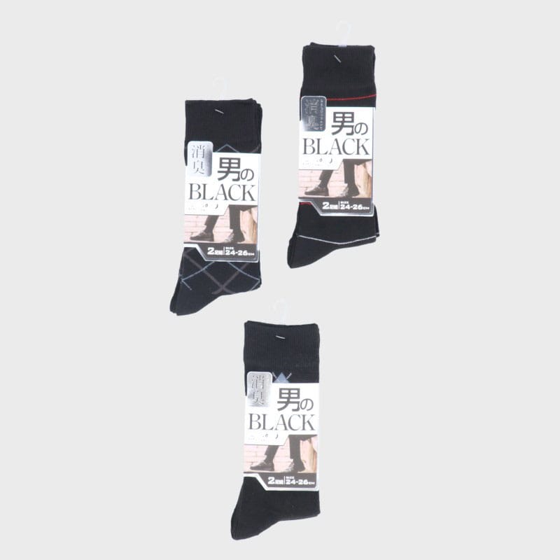 紳士クルー丈綿混黒柄銀イオン加工2足組
